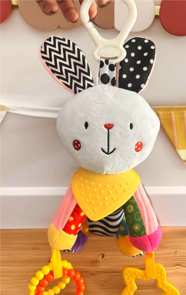 Este Sonajero de Conejo con Rascaencías es un juguete multifuncional y estimulante. Con colores vibrantes y texturas variadas, ayuda a desarrollar el sentido del tacto y la vista. Su diseño con diferentes formas fomenta la curiosidad de tu bebé, mientras que las rascaencías ofrecen un toque de confort. Ideal para momentos de juego, este sonajero promueve la coordinación mano-ojo y proporciona diversión educativa.